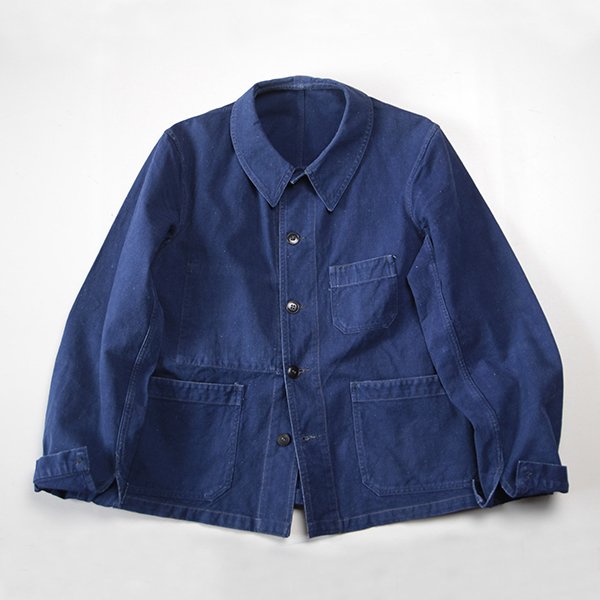 ~ 1940's FRENCH WORK INDIGO LINEN JACKET (MEDIUM)