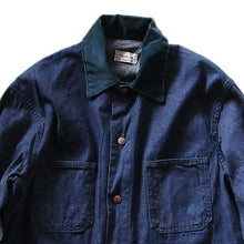 The denim body with selvedge has four simple pockets, and the green cordy roy fabric is also a good point.