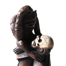 A monkey and skull figurine finished with plaster, which is familiar in our shop.