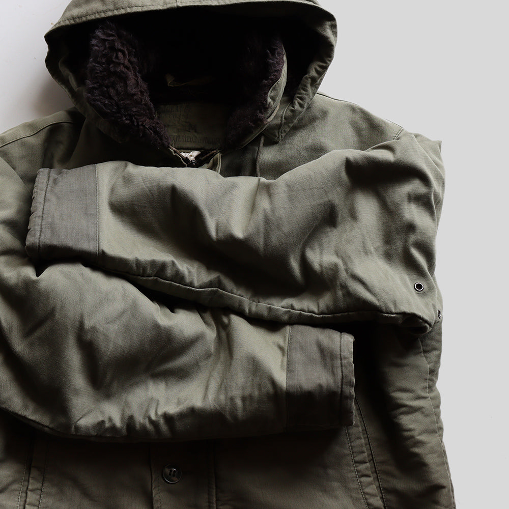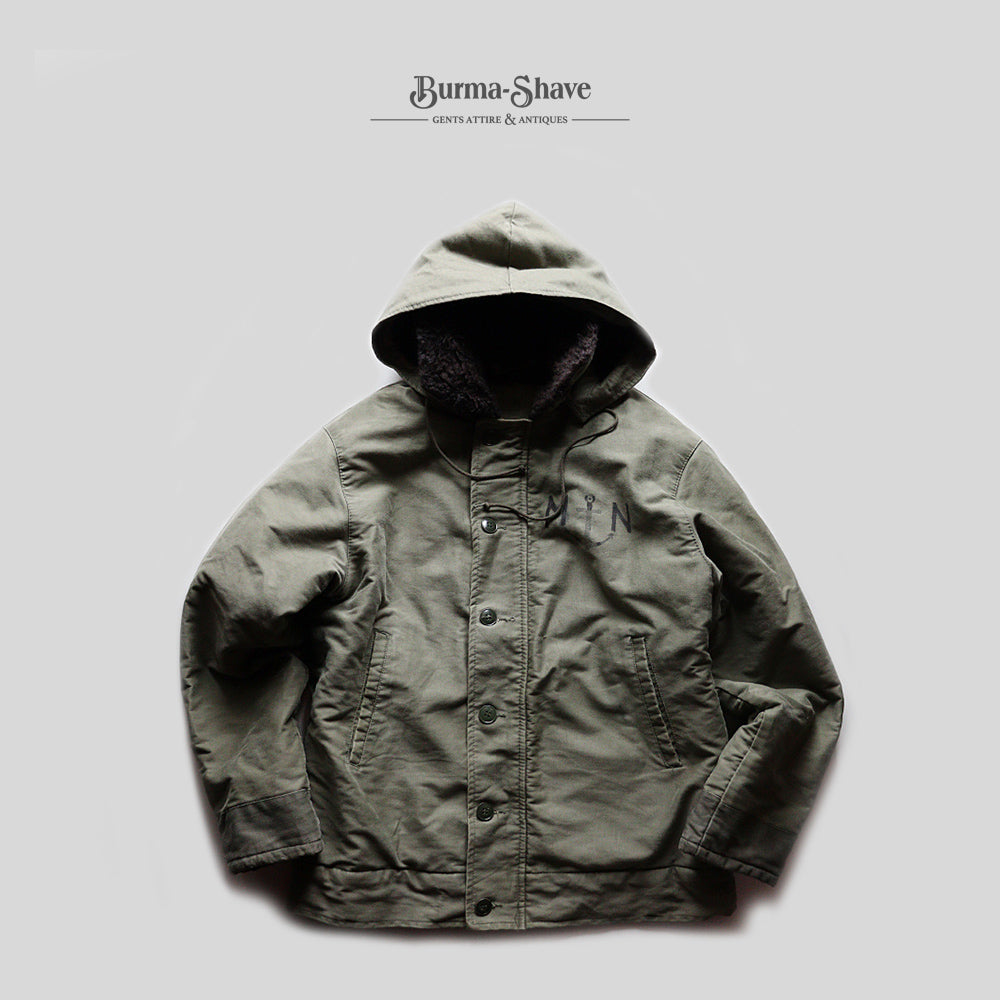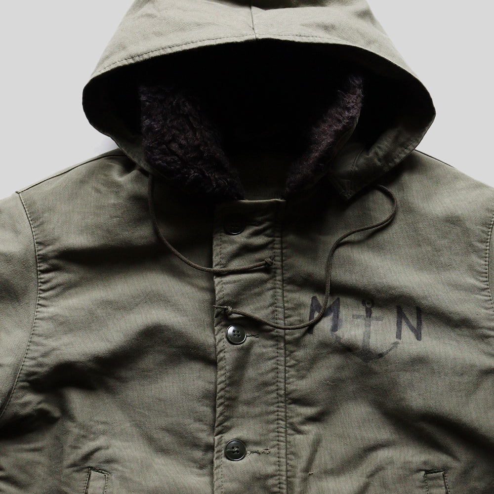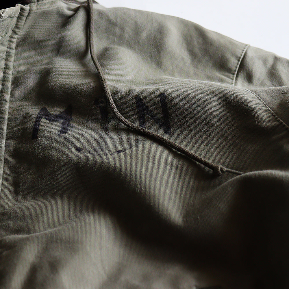 アメリカ物で言ったところのN1デッキジャケット、ジャングルクロースのボディーにフランス海軍のステンシルが施され中でも希少性の高いフード付きボディーで久しぶりのご紹介となります。