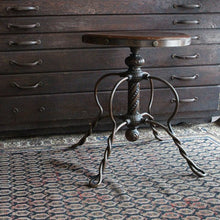 歪に編み込まれたツイストワイヤーの脚部、装飾が美しく、現代のスツールでは決して味わう事ができない独特な佇まいが魅力のアンティークスツールとなります。