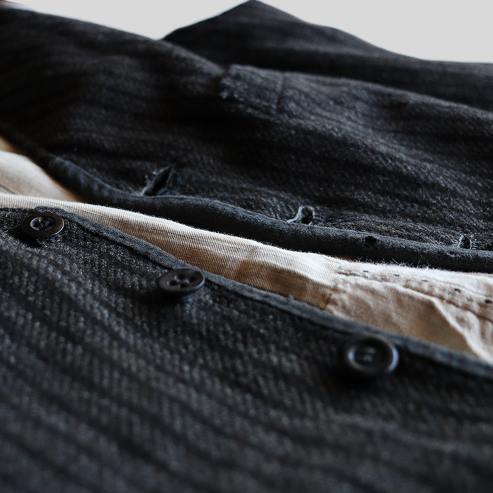 上質なウールツイード、パッチワークや刺し子の補修が施された1点物感の強い個体となります。