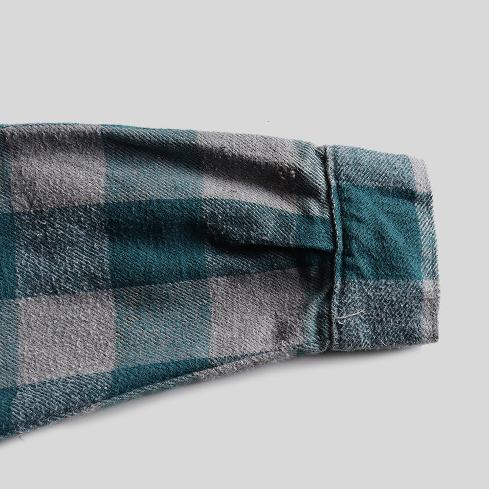 コットンフランネルの奥行きのある質感とブロックチェックの配色が非常に良く、このブランドは着丈のバランスが良く好きな方も多いでしょう。
